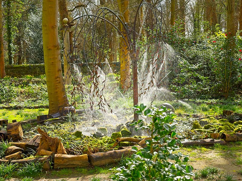 Visitors are welcome to explore the three-acre garden which features a series of garden rooms and delightful architectural structures, fountains and magical water features, all in a peaceful woodland setting.